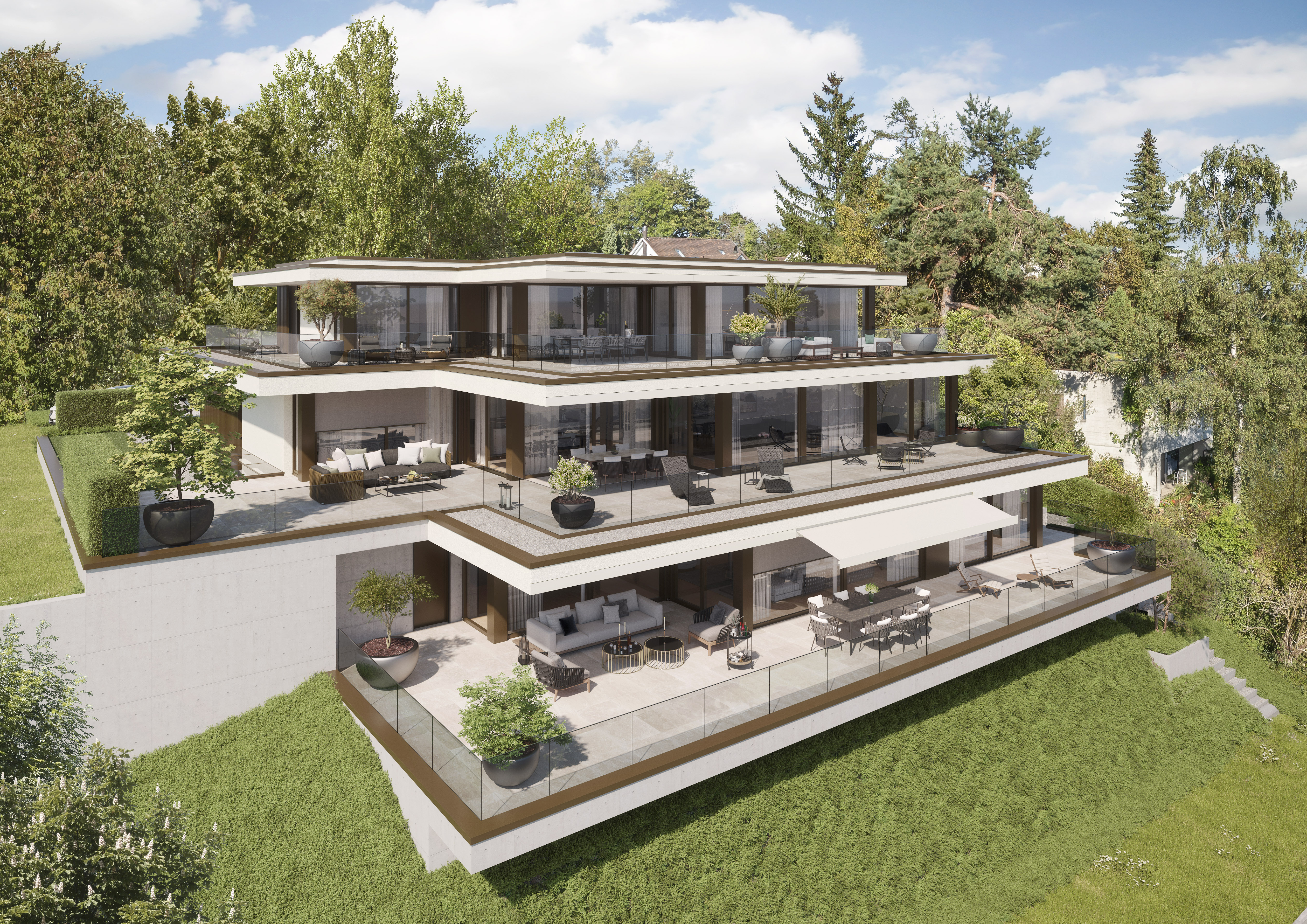 An zentraler und ruhiger Lage in der Zürcher Seegemeinde Oberrieden entstehen fünf Eigentumswohnungen mit je 4.5 Zimmern, Traumterrasse und grosszügigen Nebenräumen. Der Wohnraumstandard ist luxuriös und dynamisch. Die Wärmeerzeugung erfolgt über eine Sole-Wasserwärmepumpe.