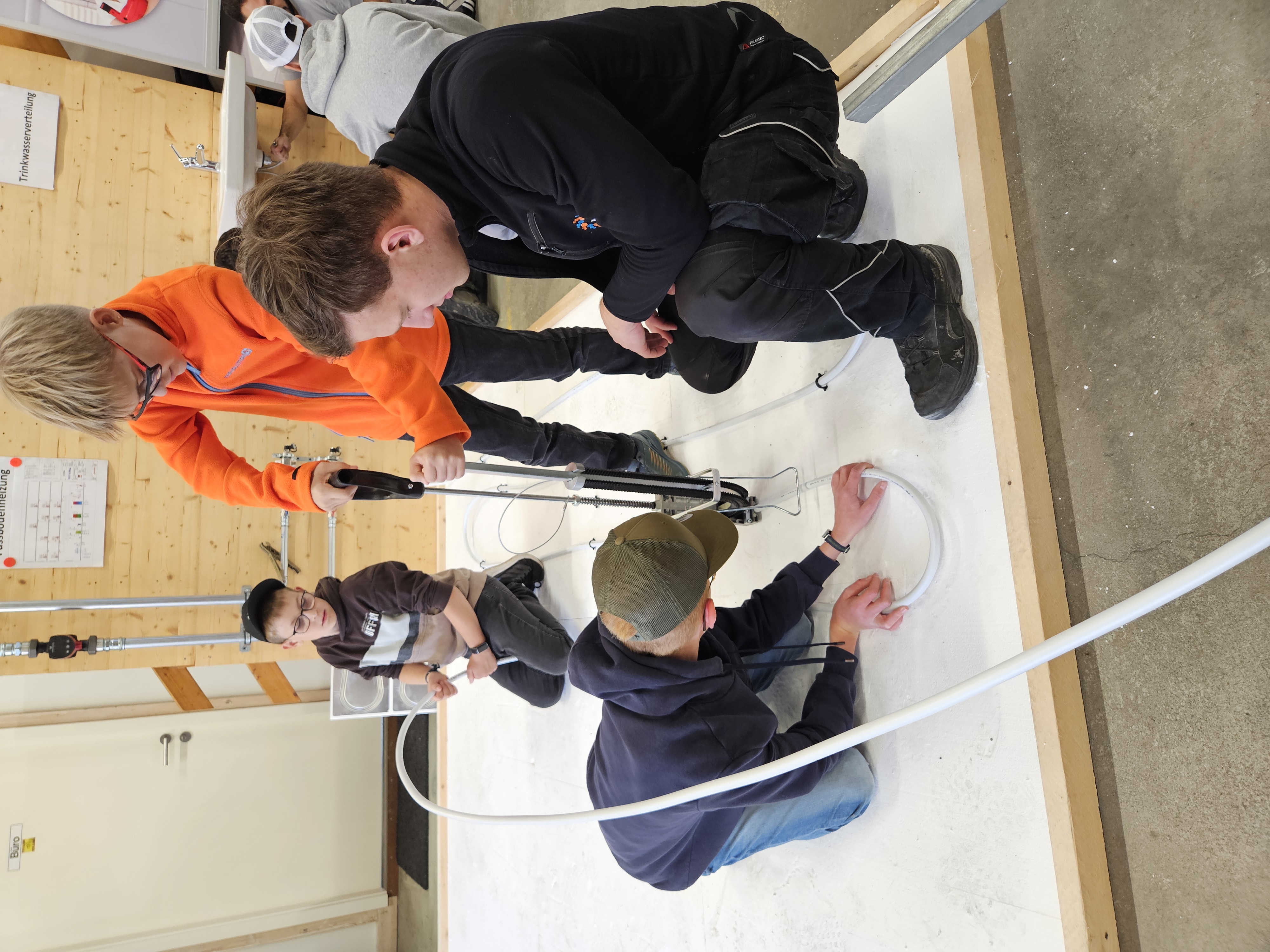 Ihre eigenen praktischen Fähigkeiten unter Beweis zu stellen und viele Werkzeuge selbst in die Hand zu nehmen, Rohrleitungen zu schweissen, selbst eine Fussbodenheizung zu verlegen und ein Gefühl für die vielfältigen Materialien zu bekommen, machte den Jugendlichen am meisten Freude.